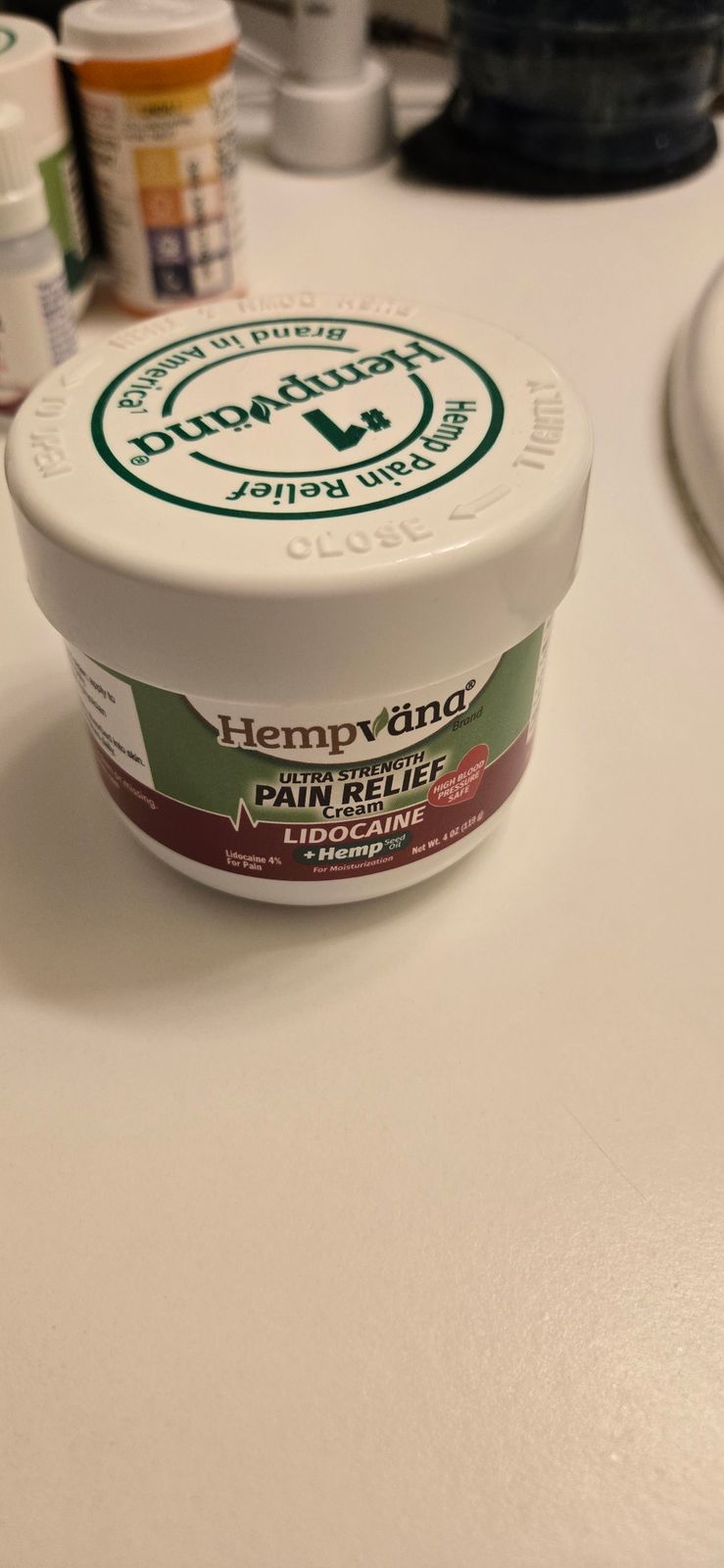 Lidocaine is an amino-amide type local anesthetic and when it’s applied directly to the skin, it helps numb the area. It works to help relieve pain by desensitizing the nerves that cause you pain. Hempvana Lidocaine Pain Relief Cream uses the active ingredient lidocaine 4%.